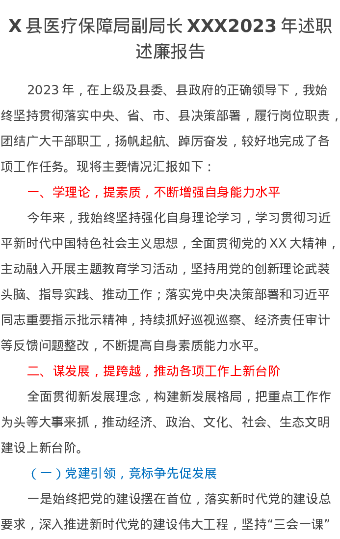 X县医疗保障局副局长XXX2023年述职述廉报告