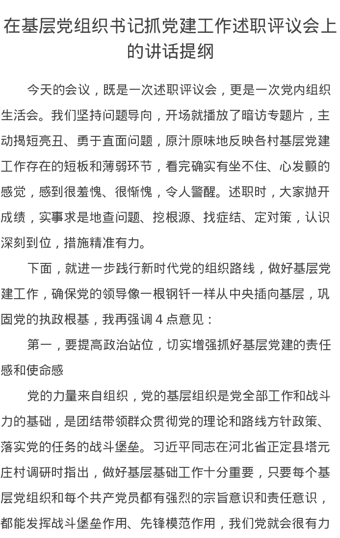 在基层党组织书记抓党建工作述职评议会上的讲话提纲