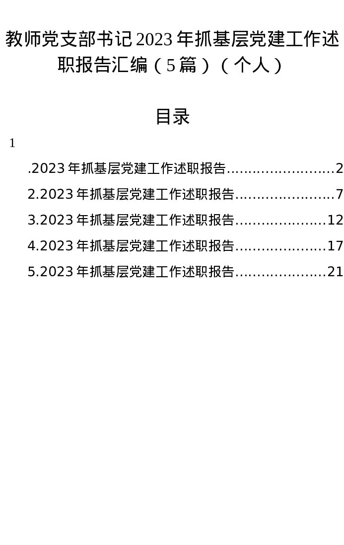 汇编:教师党支部书记2023年抓基层党建工作述职报告5篇(个人)