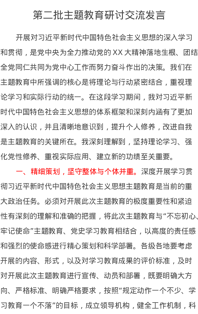 第二批主题教育研讨交流发言158(特色社会主义思想)