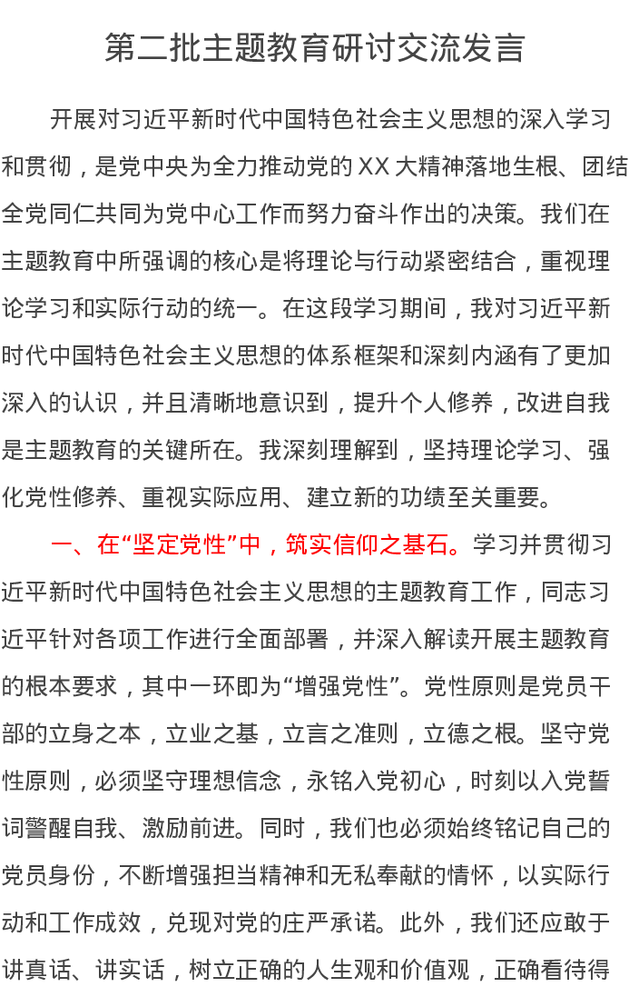 第二批主题教育研讨交流发言160(特色社会主义思想)