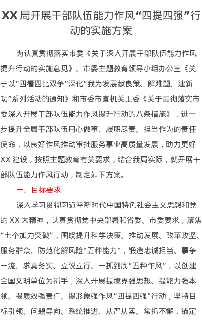 XX局开展干部队伍能力作风“四提四强”行动的实施方案