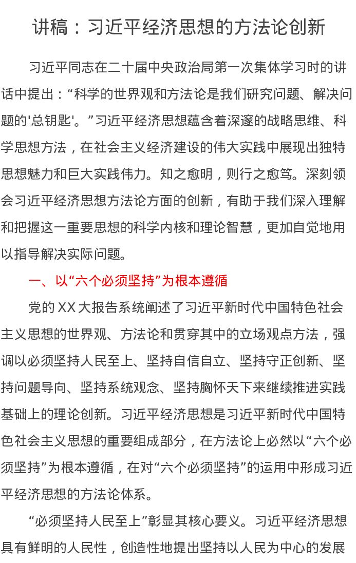 讲稿:习近平经济思想的方法论创新