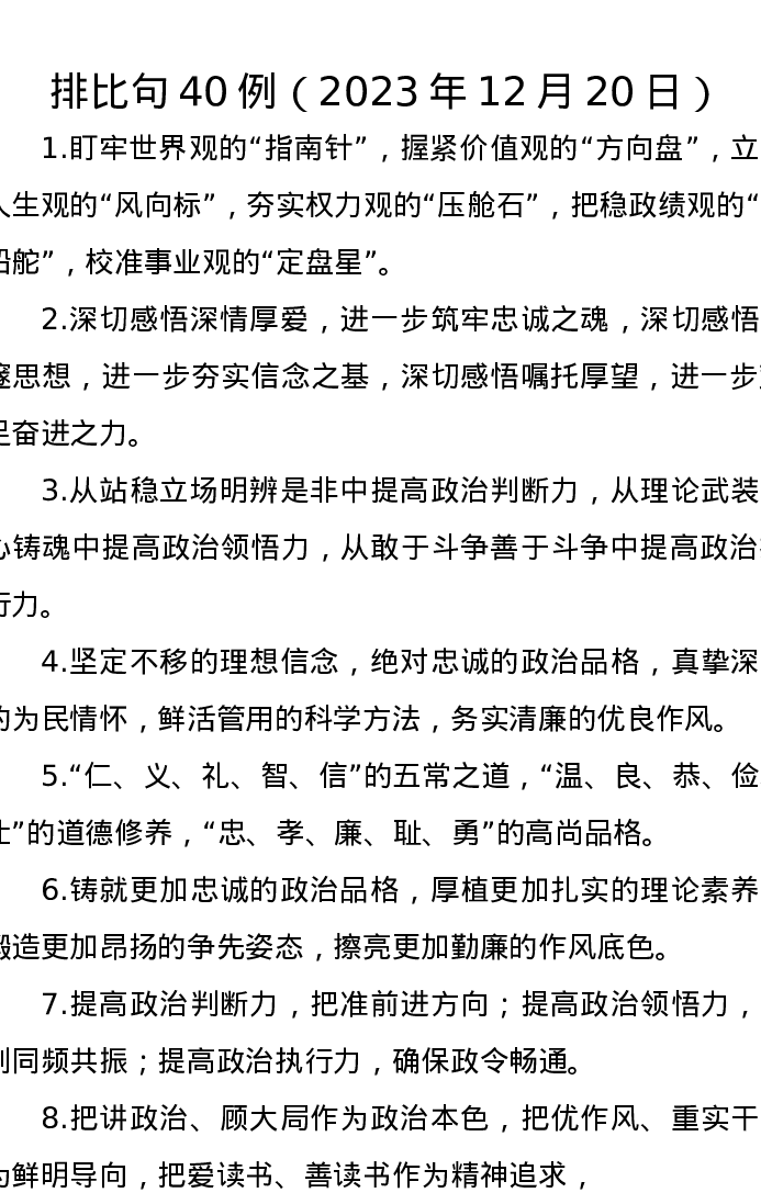 排比句40例(2023年12月20日)