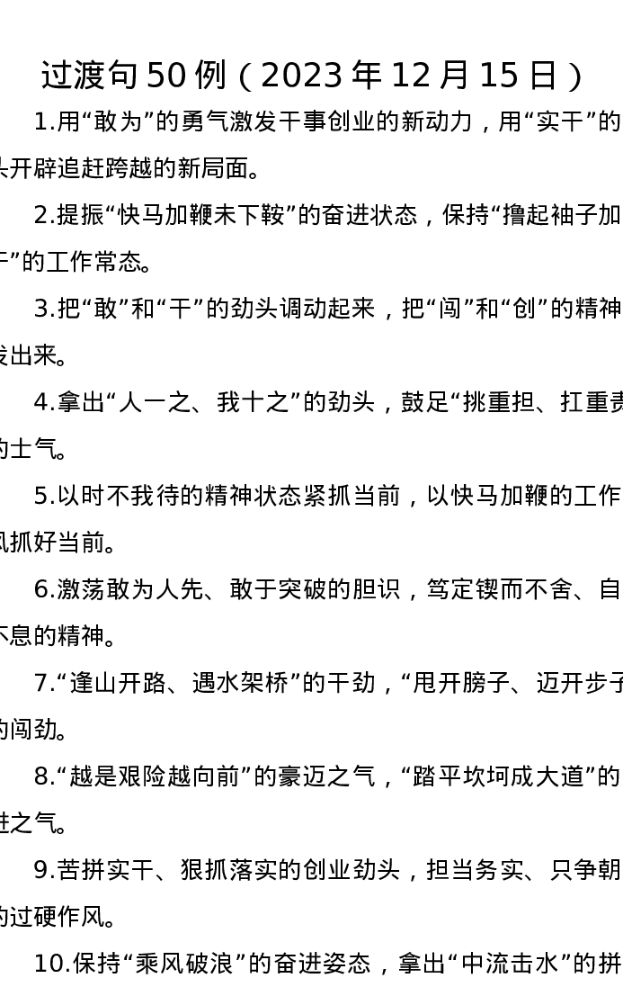 过渡句50例(2023年12月15日)