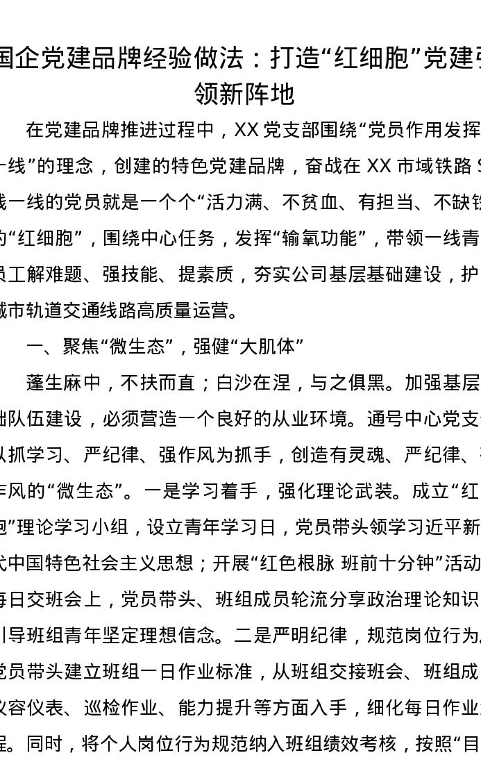 国企党建品牌经验做法:打造“红细胞”党建引领新阵地