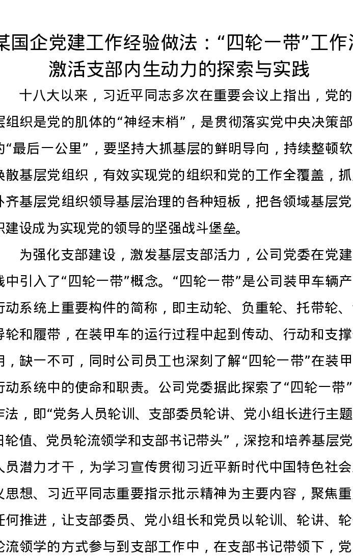 某国企党建工作经验做法:“四轮一带”工作法激活支部内生动力的探索与实践