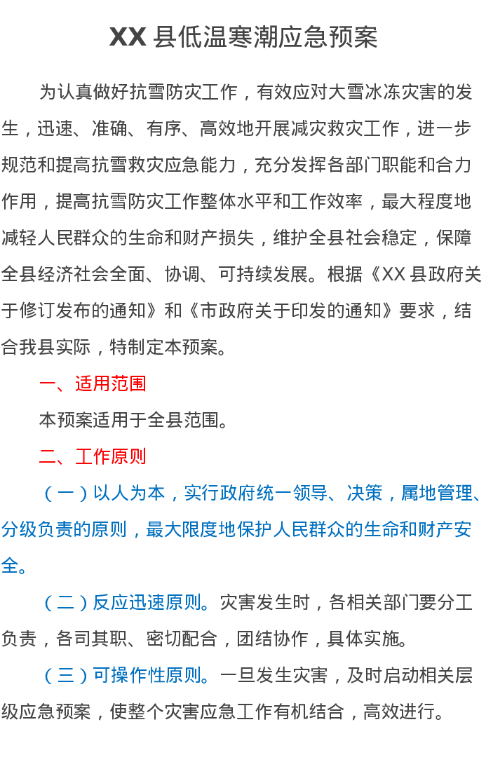 XX县低温寒潮应急预案