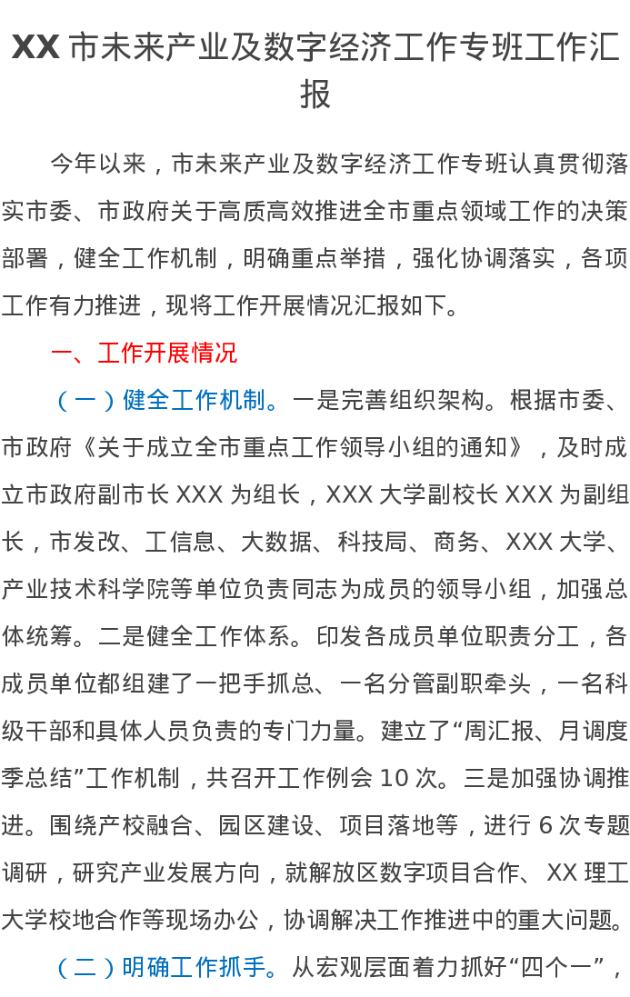XX市未来产业及数字经济工作专班工作汇报