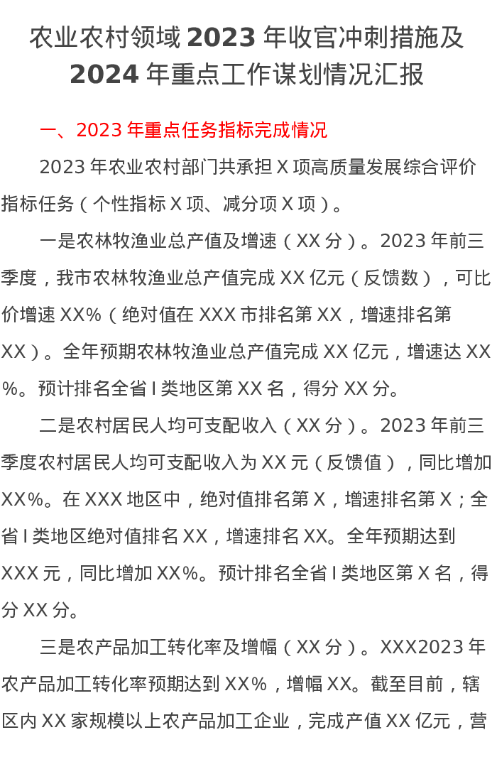 农业农村领域2023年收官冲刺措施及2024年重点工作谋划情况汇报