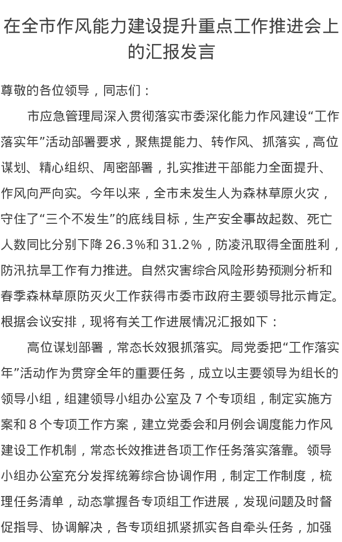 在全市作风能力建设提升重点工作推进会上的汇报发言