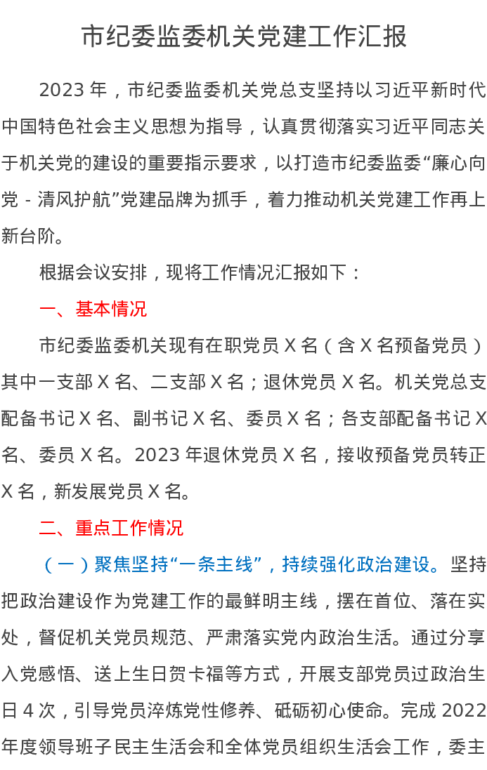 市纪委监委机关党建工作汇报