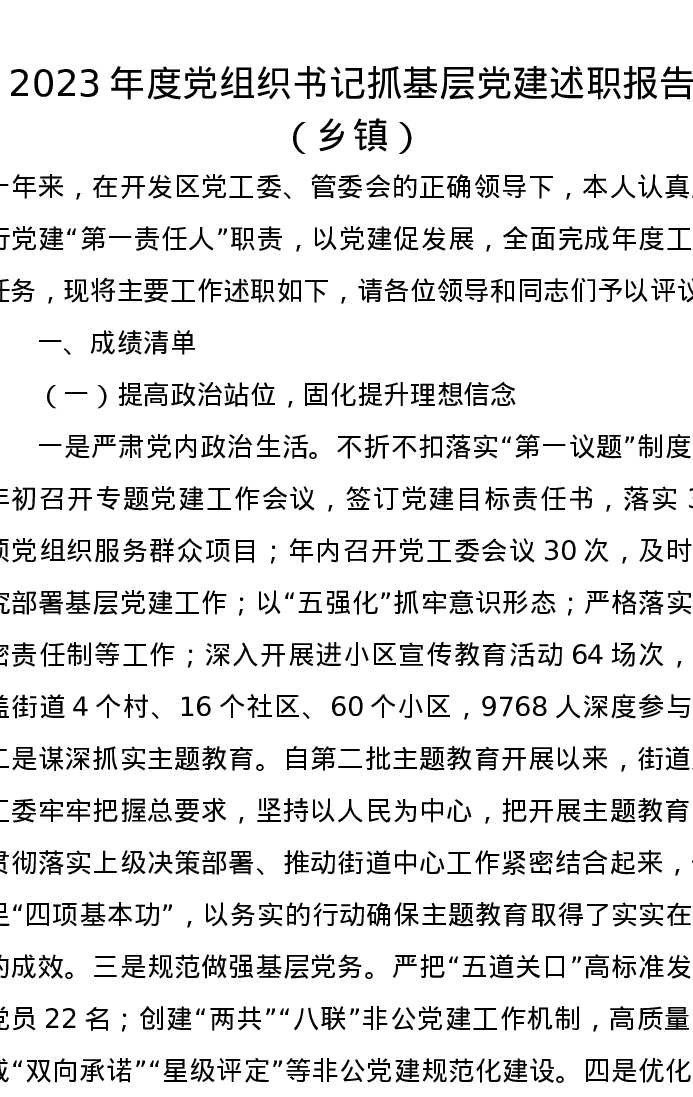 2023年度党组织书记抓基层党建述职报告(乡镇)