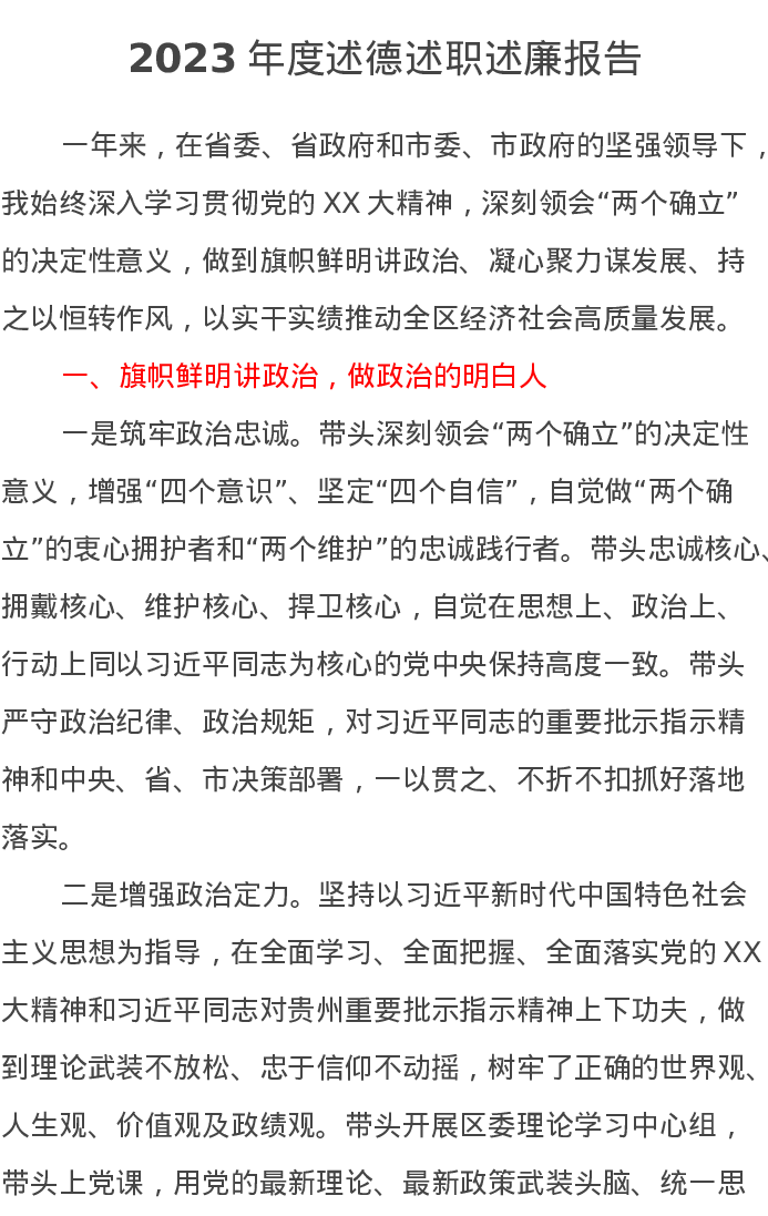2023年度述德述职述廉报告