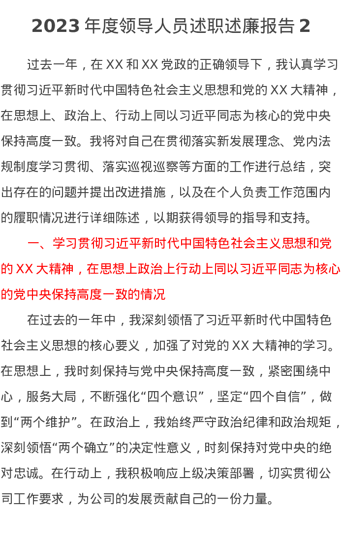 2023年度领导人员述职述廉报告2