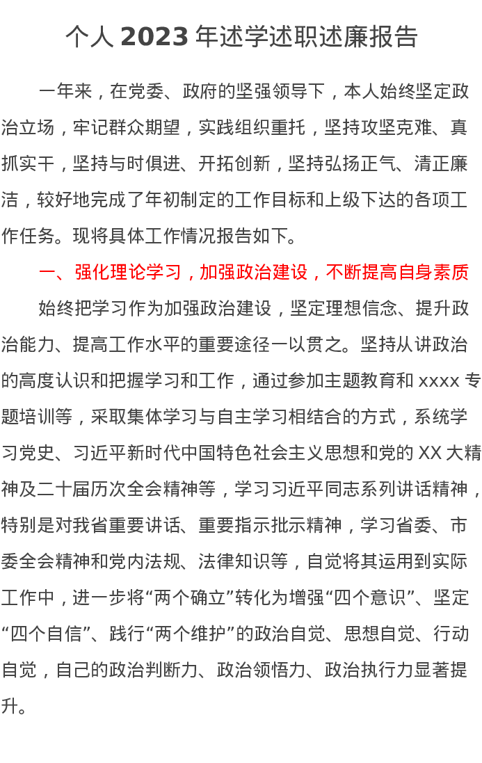 个人2023年述学述职述廉报告