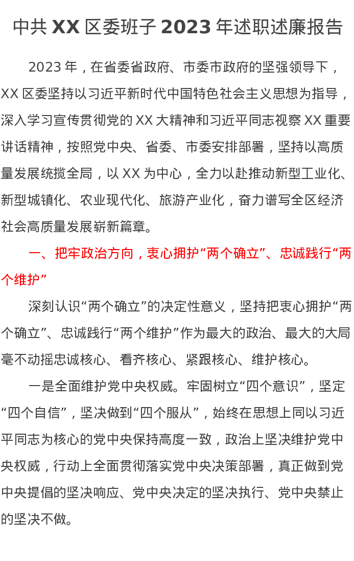 中共XX区委班子2023年述职述廉报告