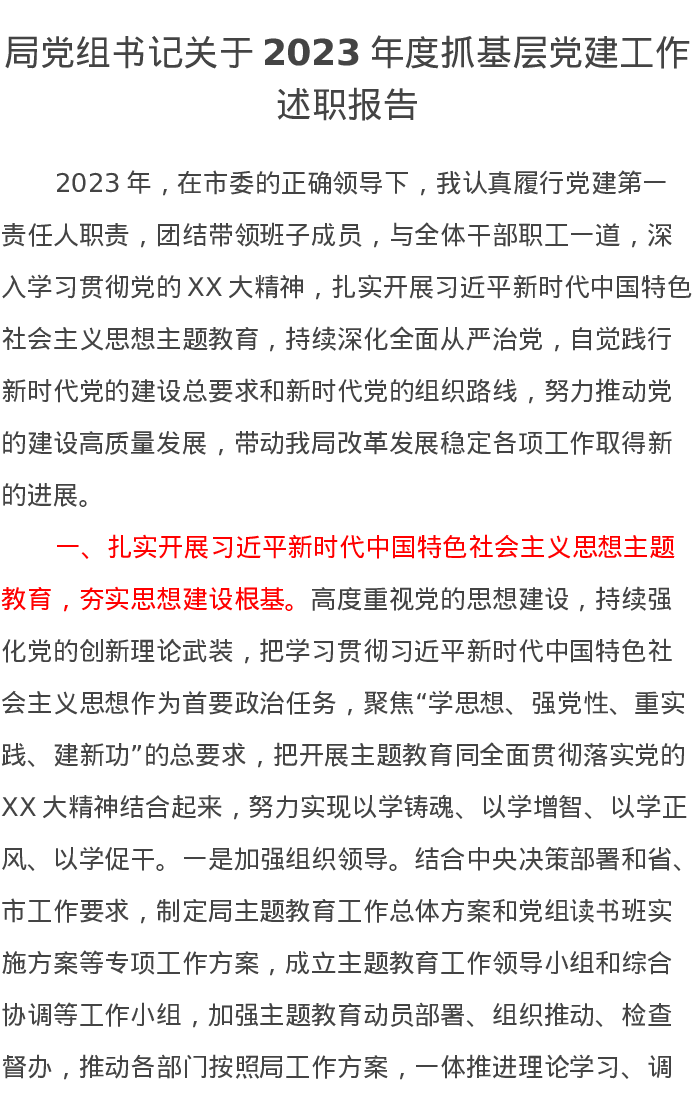 局党组书记关于2023年度抓基层党建工作述职报告