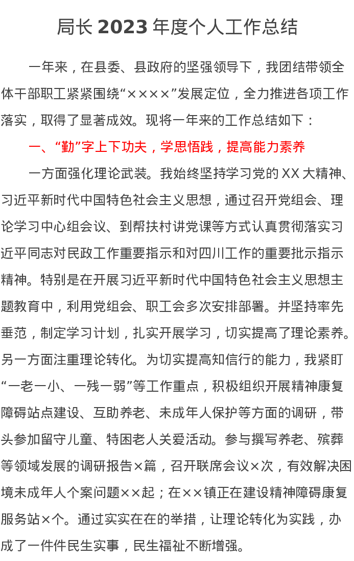 局长2023年度个人工作总结