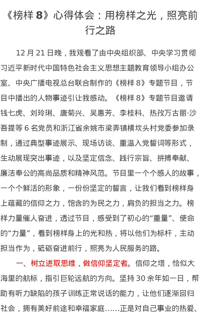 《榜样8》心得体会:用榜样之光,照亮前行之路