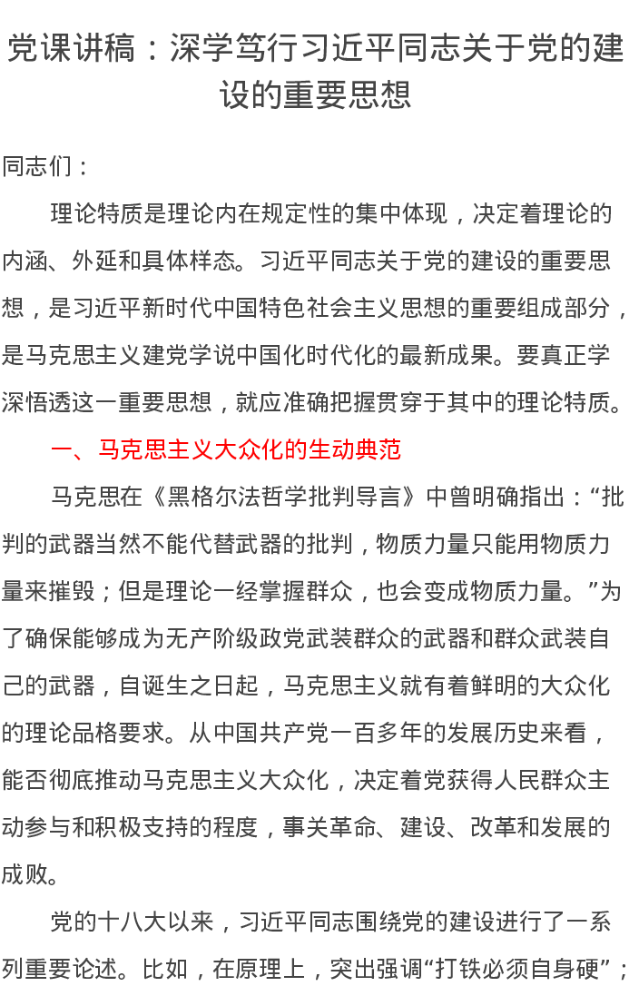 党课讲稿:深学笃行习近平总书记关于党的建设的重要思想