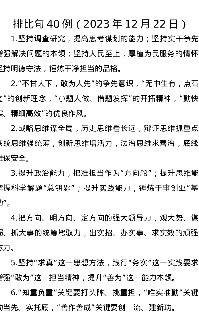 排比句40例(2023年12月22日)
