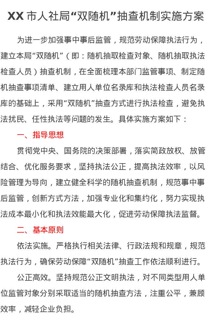 XX市人社局“双随机”抽查机制实施方案