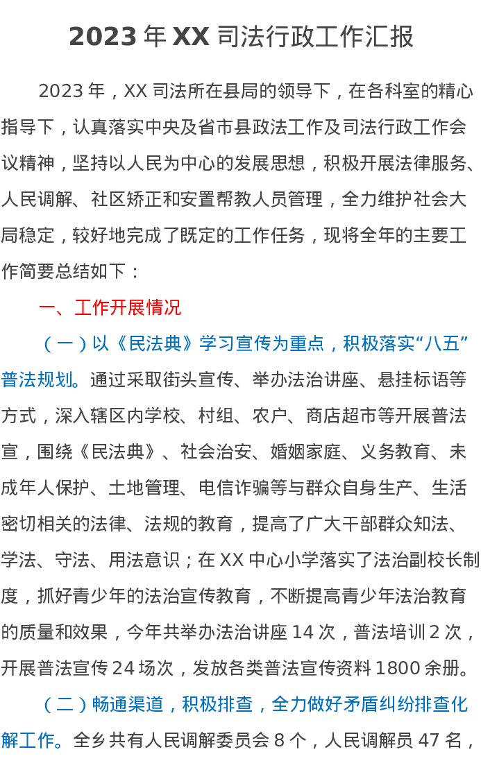 2023年XX司法行政工作汇报