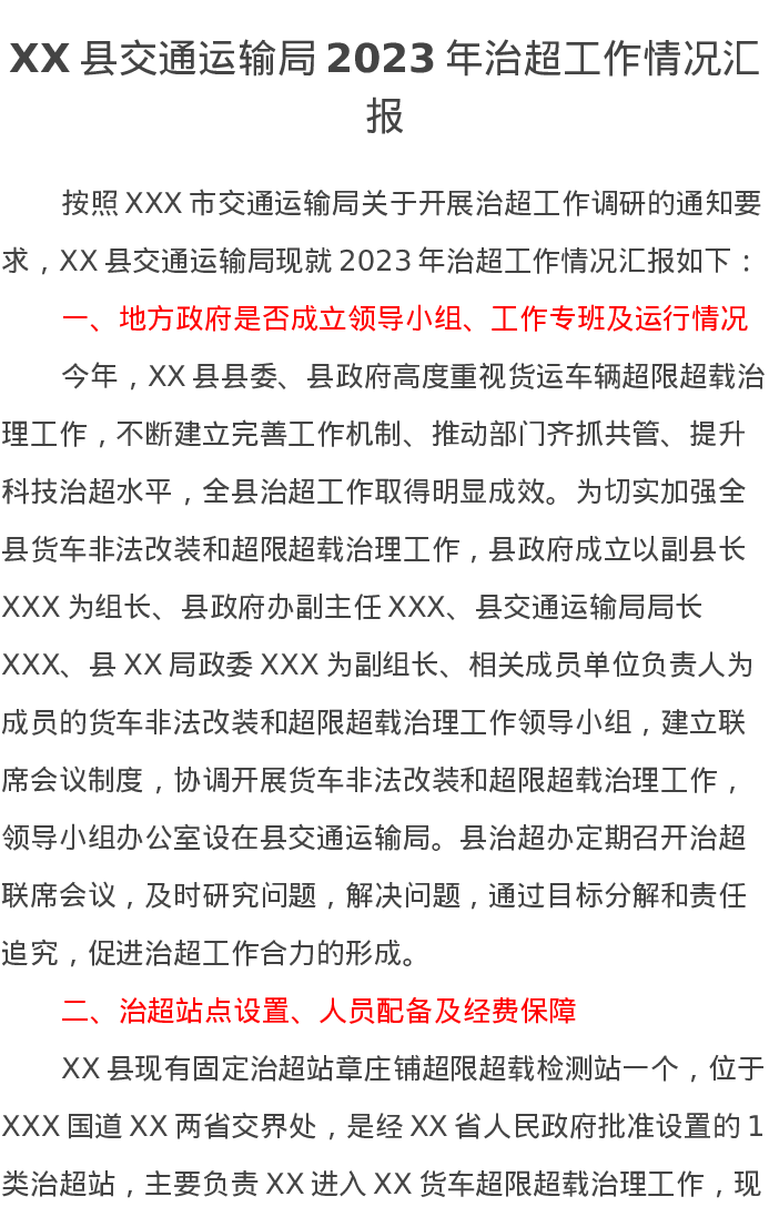 XX县交通运输局2023年治超工作情况汇报