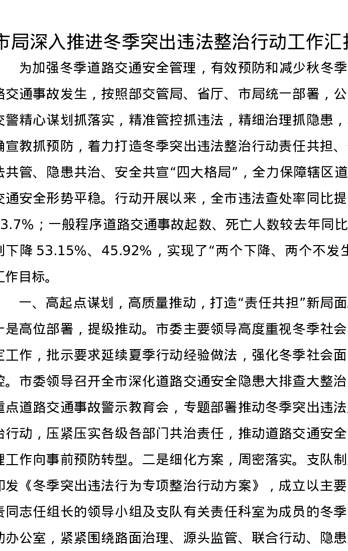 市局深入推进冬季突出违法整治行动工作汇报