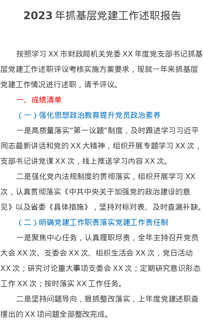 2023年X担保集团抓基层党建工作述职报告