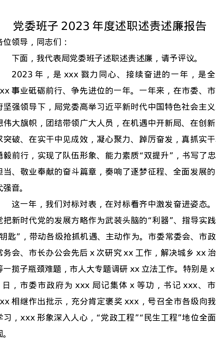 党委班子2023年度述职述责述廉报告