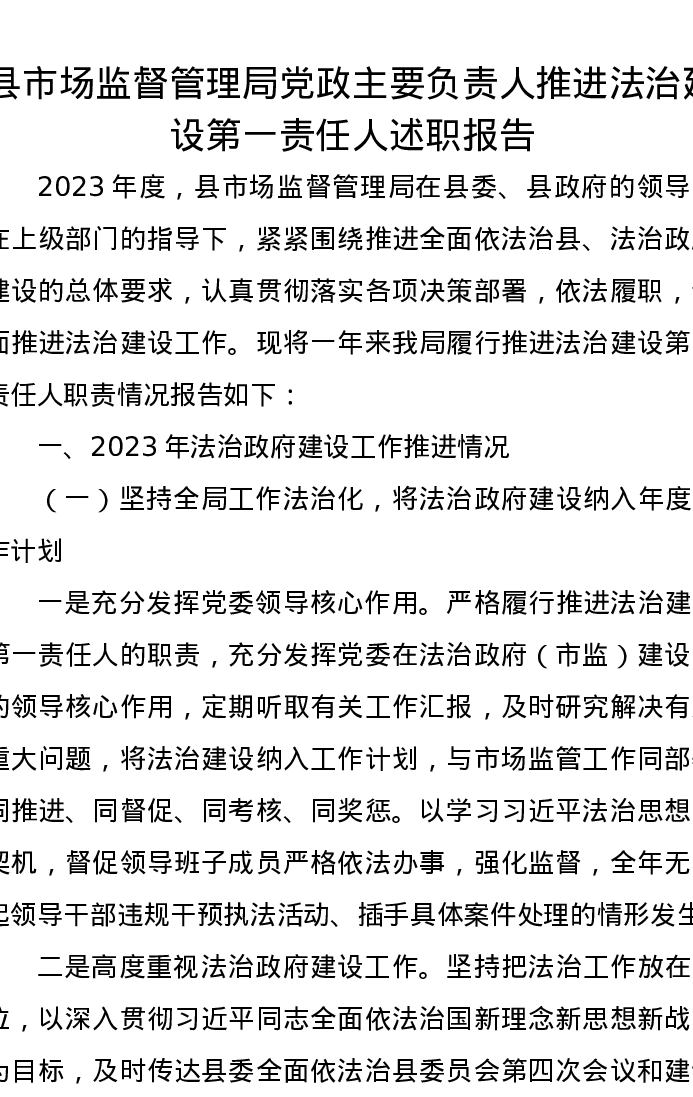 县市场监督管理局党政主要负责人推进法治建设第一责任人述职报告