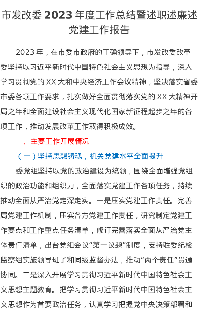 市发改委2023年度工作总结暨述职述廉述党建工作报告