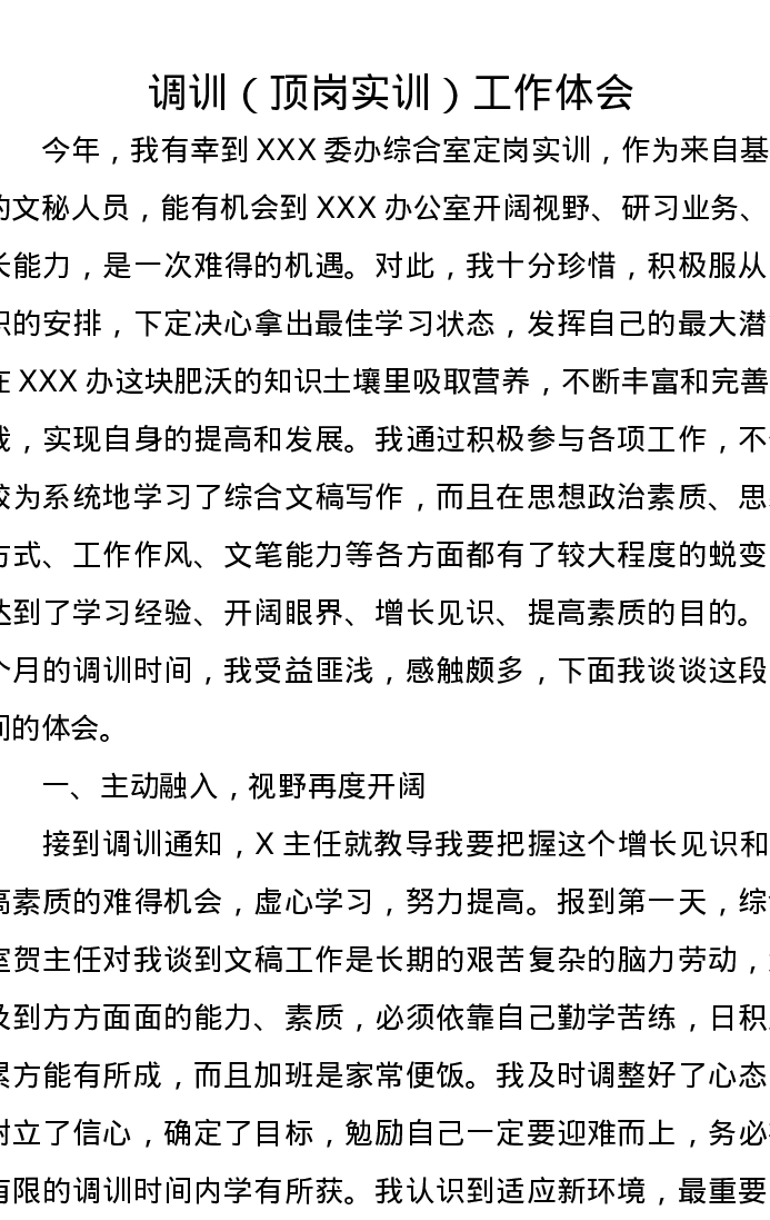 调训(顶岗实训)工作心得体会