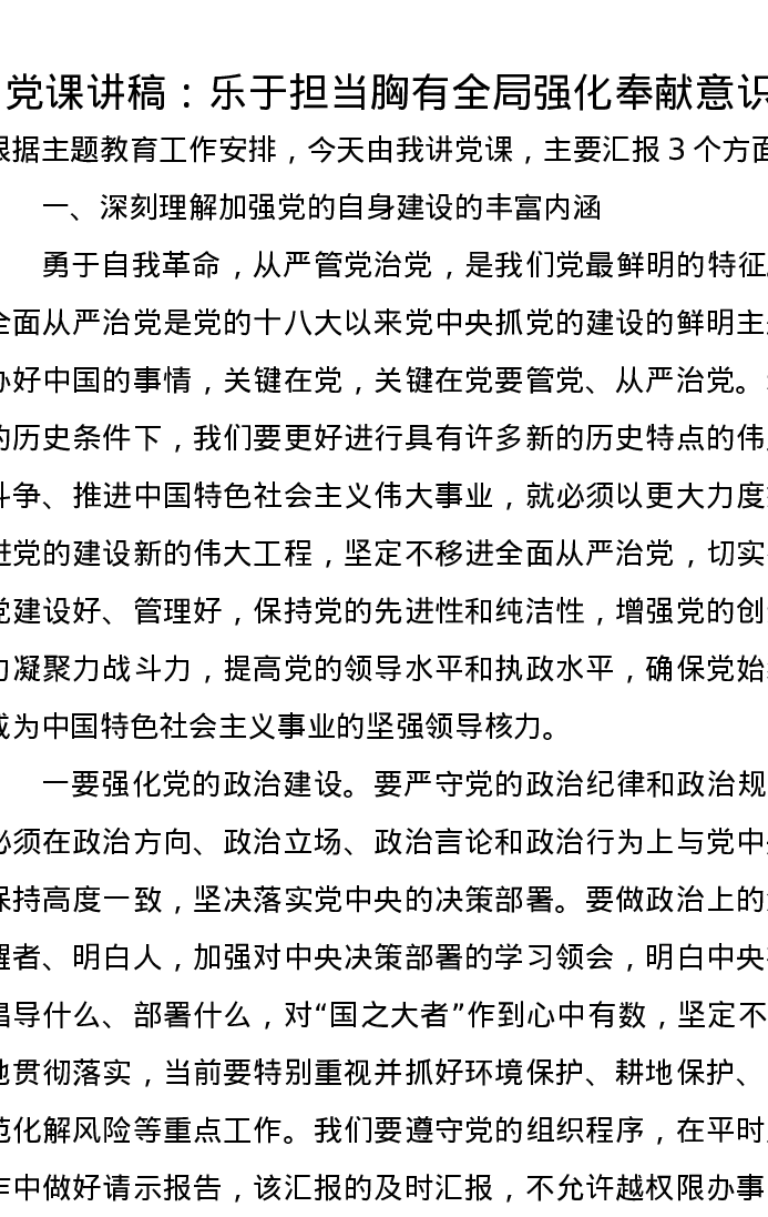 党课讲稿:乐于担当胸有全局强化奉献意识