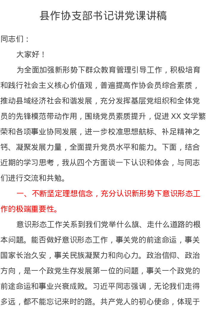 县作协支部书记讲党课讲稿