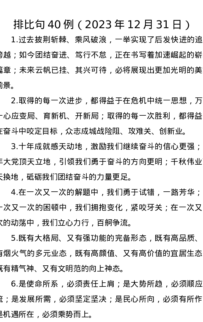 排比句40例(2023年12月31日)