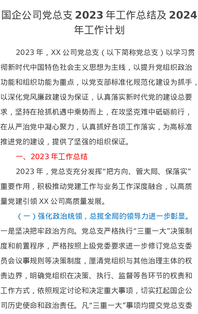 国企公司党总支2023年工作总结及2024年工作计划