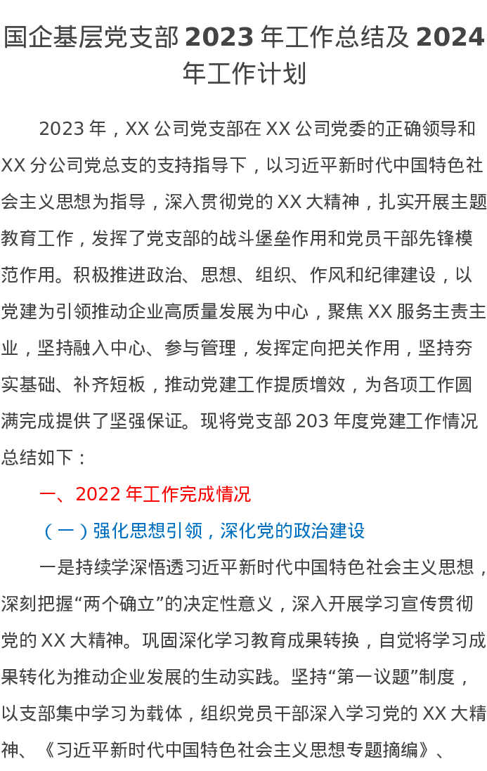国企基层党支部2023年工作总结及2024年工作计划2