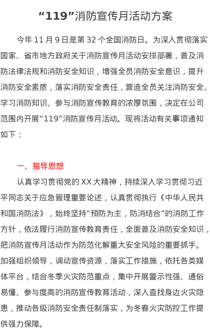 “119”消防宣传月活动方案