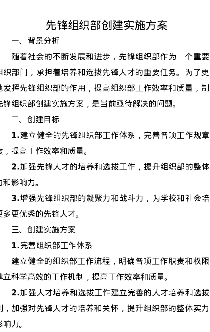 先锋组织部创建实施方案