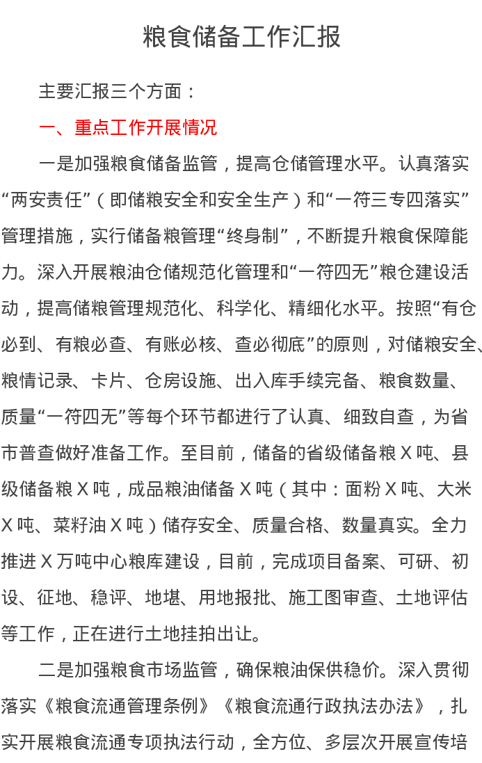 2023年粮食储备工作汇报