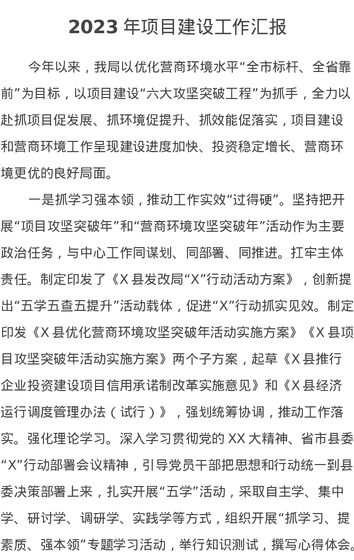 2023年项目建设工作汇报