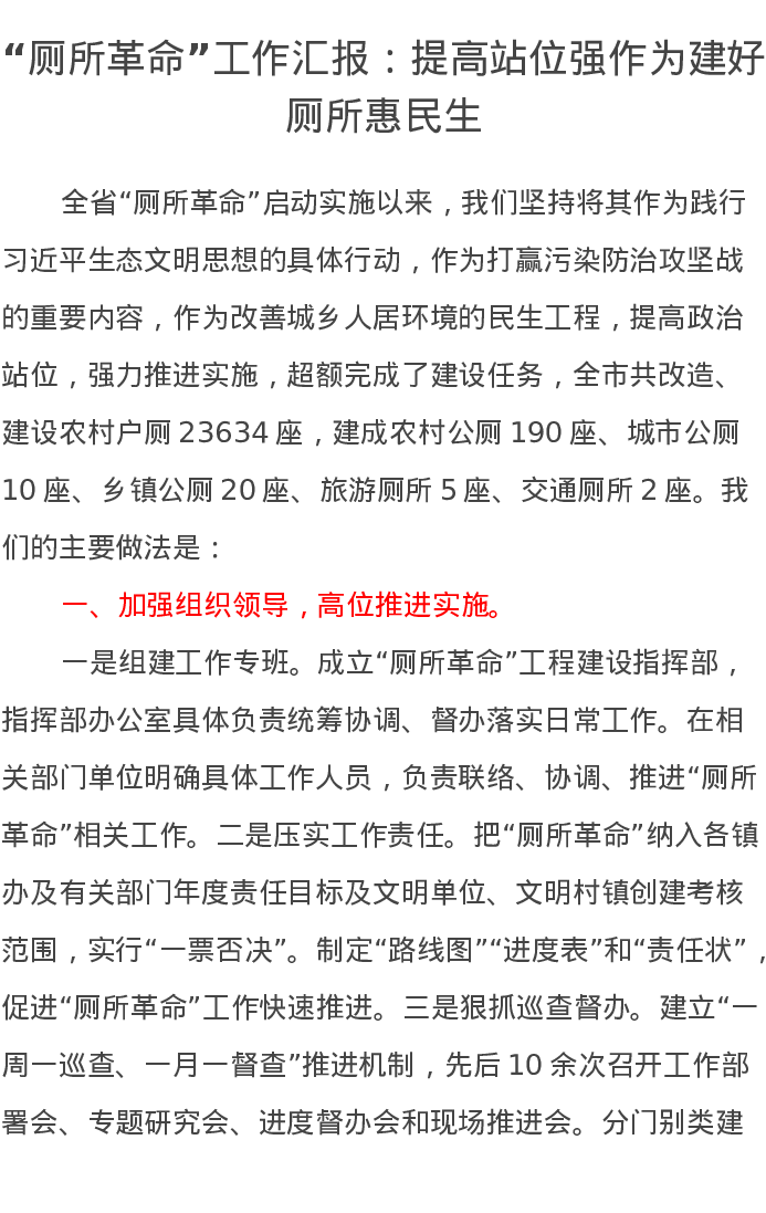 “厕所革命”工作汇报:提高站位强作为建好厕所惠民生