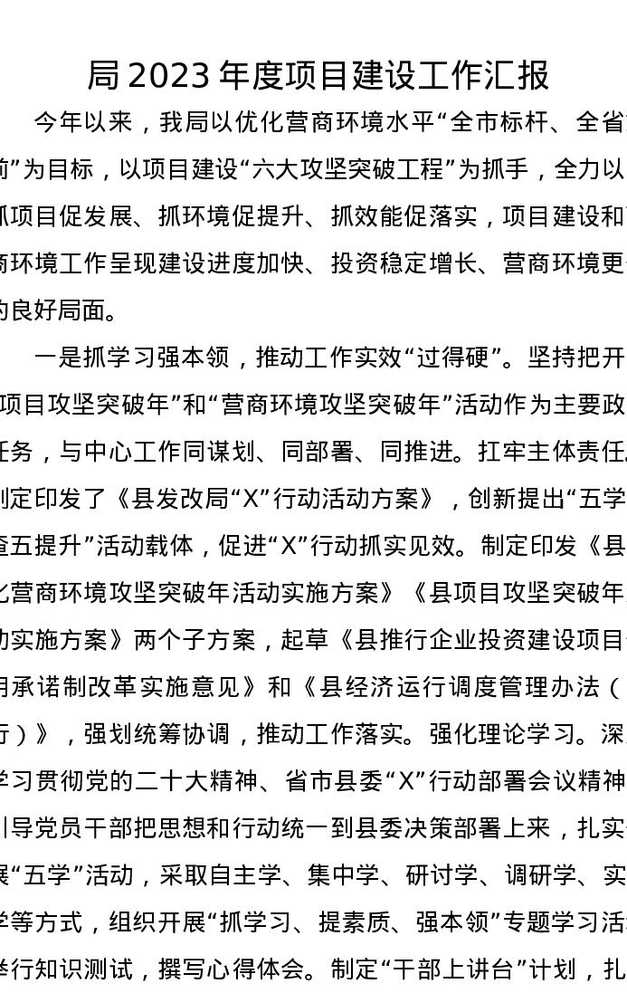 局2023年度项目建设工作汇报