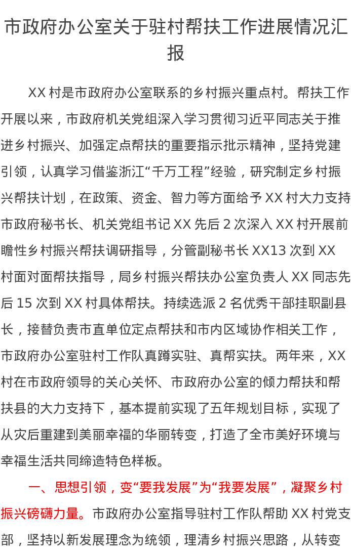 市政府办公室关于驻村帮扶工作进展情况汇报