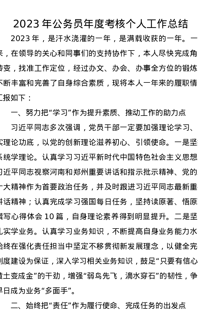 2023年公务员年度考核个人工作总结