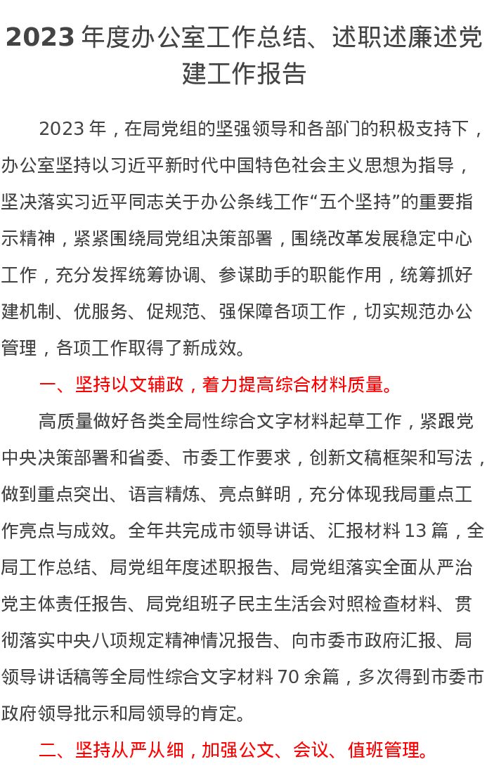 2023年度办公室工作总结、述职述廉述党建工作报告