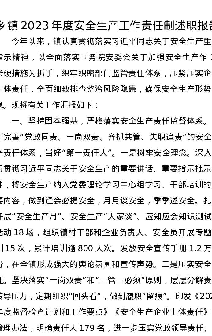乡镇2023年度安全生产工作责任制述职报告